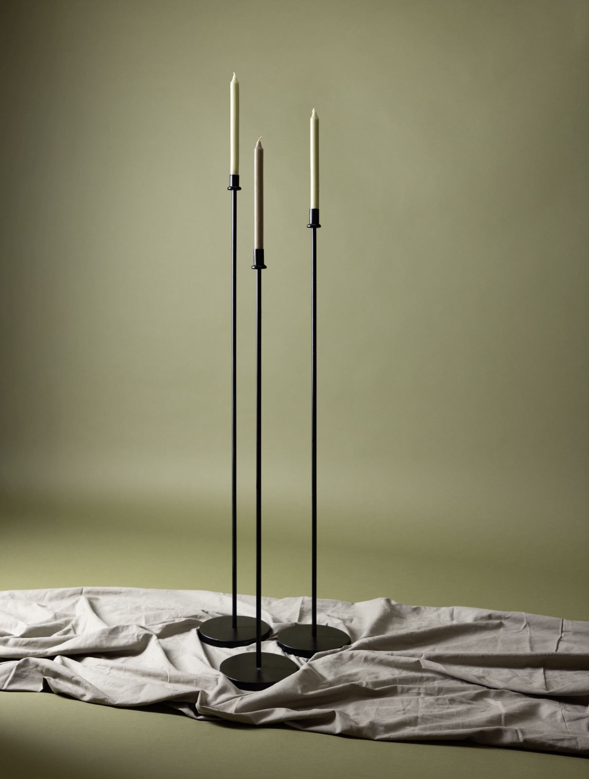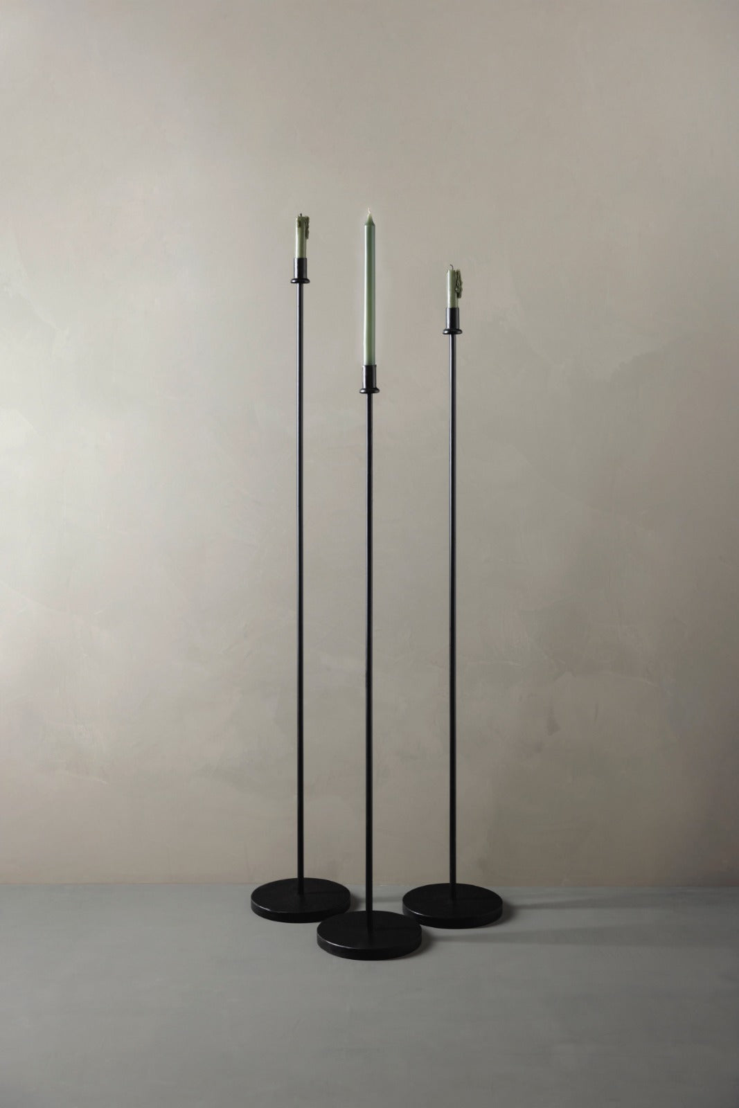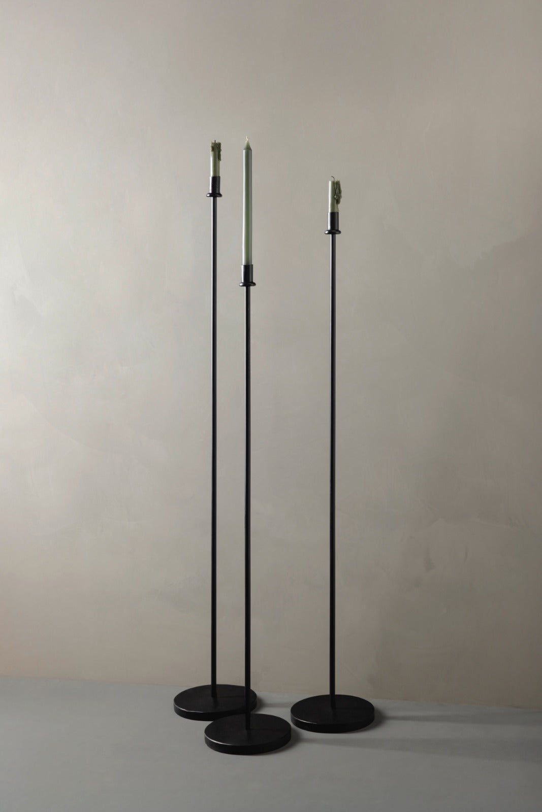 Juego de 3 candelabros de fierro con diseño minimalista y elegante. Cada candelabro cuenta con una base redonda sólida que brinda estabilidad para velas largas, creando una atmósfera sofisticada en cualquier espacio. Perfectos para agregar un toque moderno y atemporal a tu decoración.
