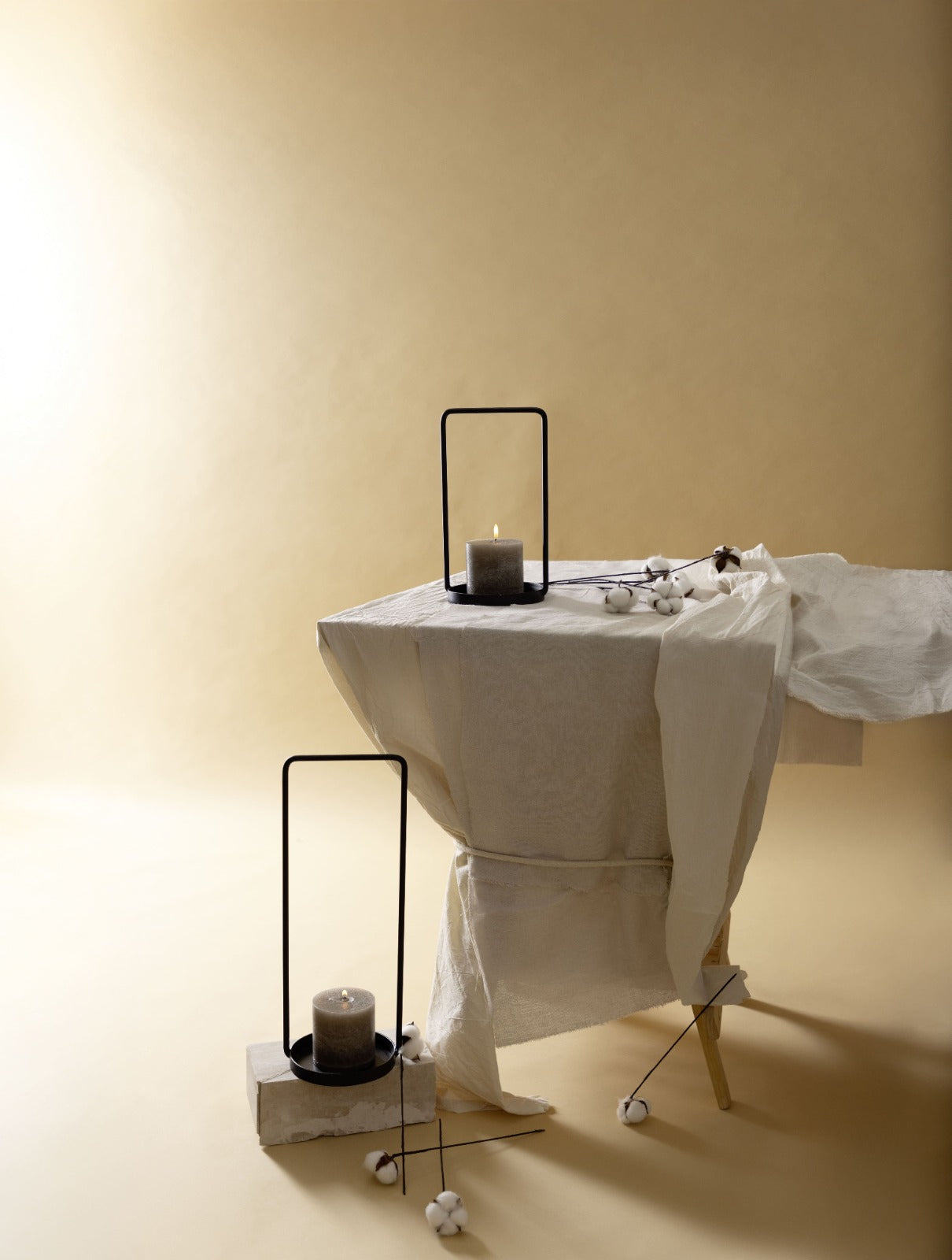 Juego de 2 candelabros de suelo/mesa con base circular y cuerpo despuntado, ideales tanto para interiores como exteriores. Cada candelabro incluye un cilindro de vidrio, que protege las velas y realza la iluminación. Combinan durabilidad y estilo con una base sólida que asegura estabilidad y un diseño robusto. El acabado en fierro resiste las inclemencias del tiempo y el uso constante, mientras que el cilindro de vidrio añade un toque elegante y funcional, protegiendo las velas y optimizando la distribución de la luz. Perfectos para añadir un aire sofisticado y cálido a cualquier entorno.
