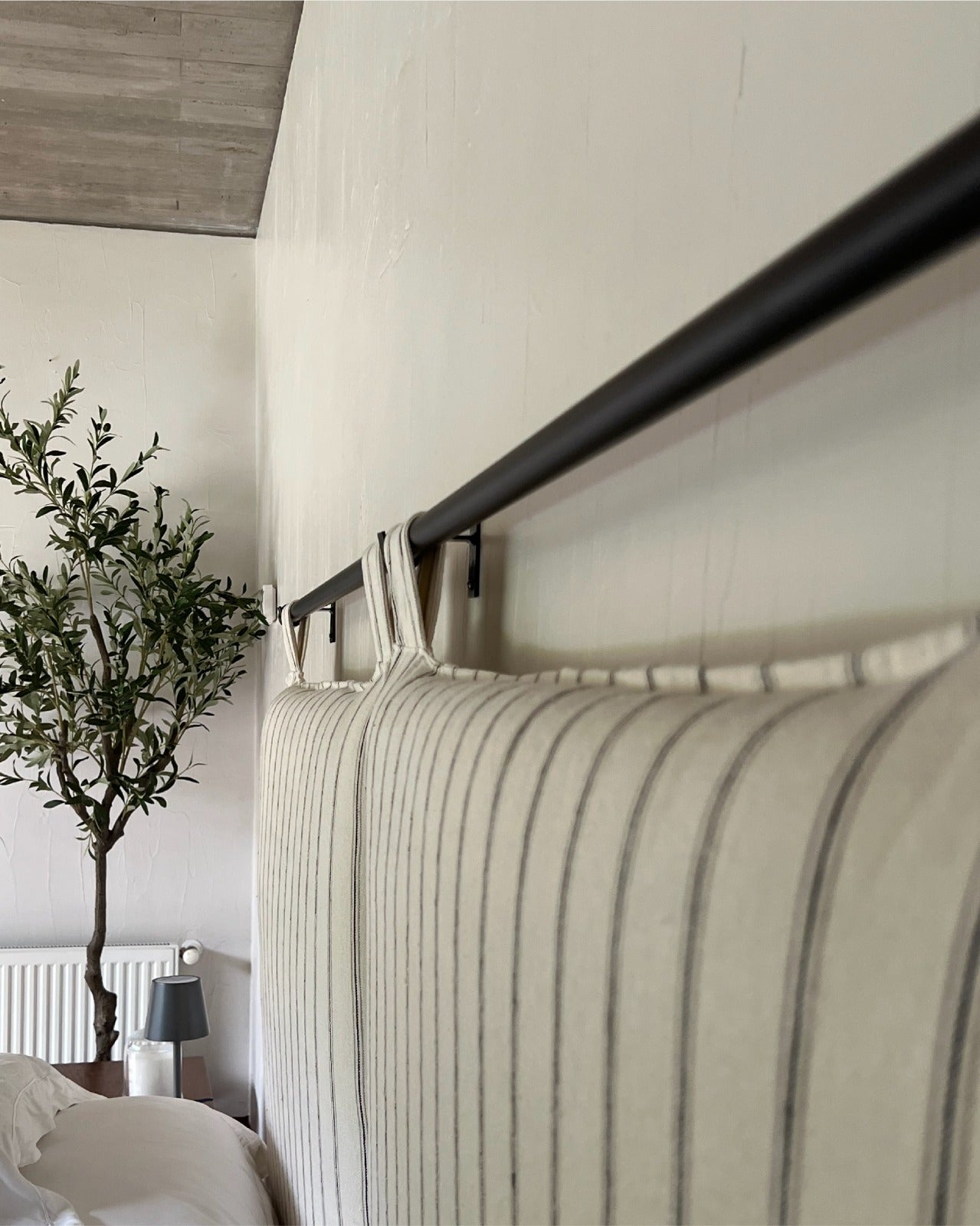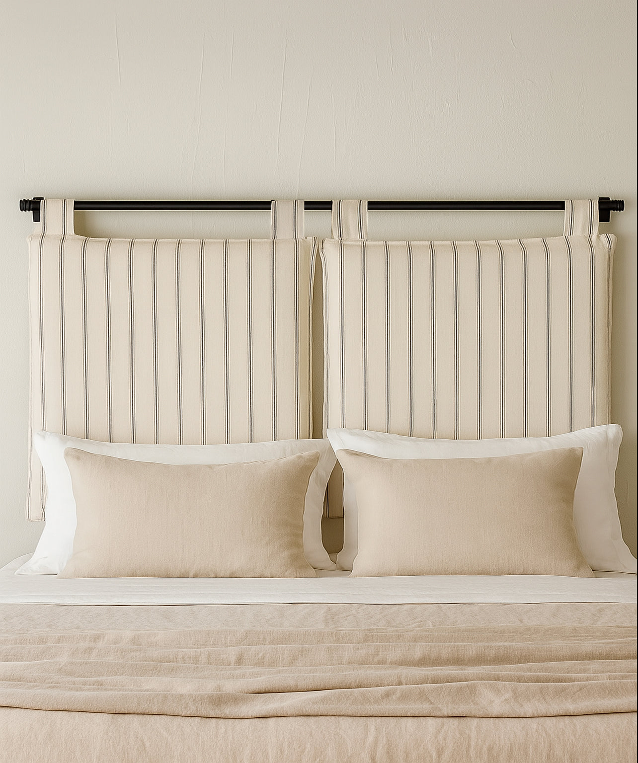 Pieza elegante y atemporal, con estructura de fierro y tapizado suave que combina diseño minimalista y personalidad. Ideal para crear un dormitorio acogedor y sofisticado. La tela es entregada por el cliente, previamente lavada, para comenzar la producción.
